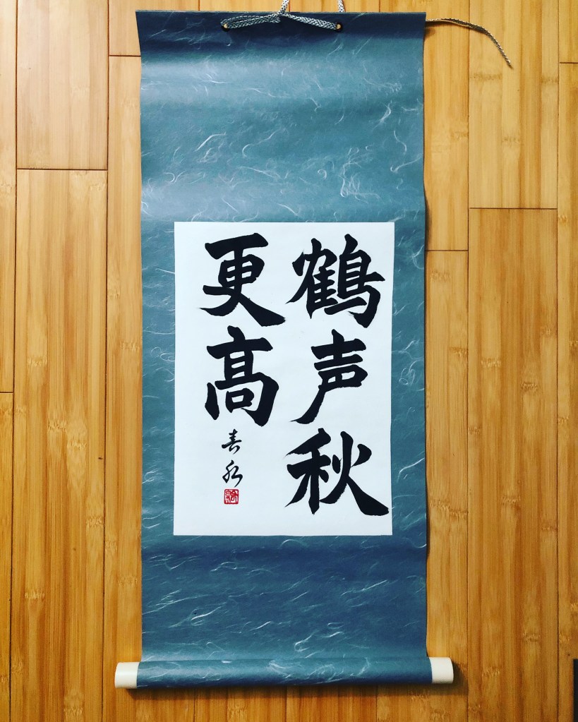 A crane’s cry is heard further in clear Autumn weather. 鶴声(かくせい)秋更に高し