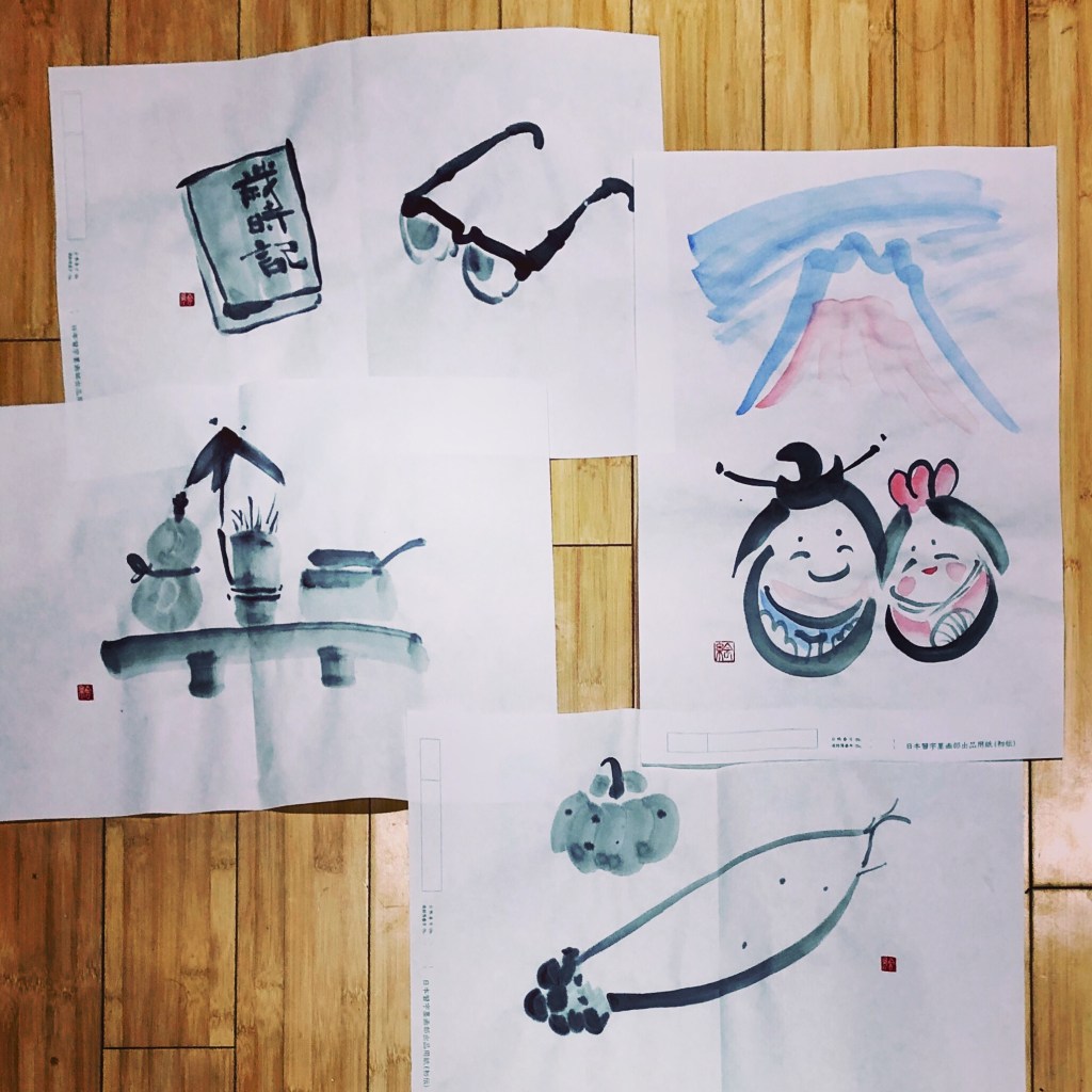 日本習字墨画部 9、10、11、12月号 初伝課題 NihonShuji Ink Brush Paintings Monthly Assignments for Sep. Oct. Nov. and Dec.